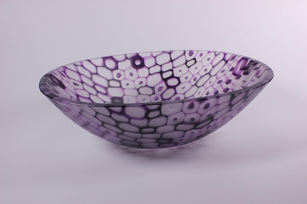 Josh Atkinson of Harbour Art Glass is a kiln-formed glass artist specialising in hand-pulled vitrigraph murrine that he makes in his studio in Cowling, North Yorkshire. Using kiln-forming techniques, he transforms his murrine into glass vessels, wall pieces, and dishes.