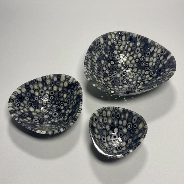Bring modern, handcrafted glass art into your home with In the Grey – a unique fused glass bowl made using traditional murrine techniques with a contemporary twist.